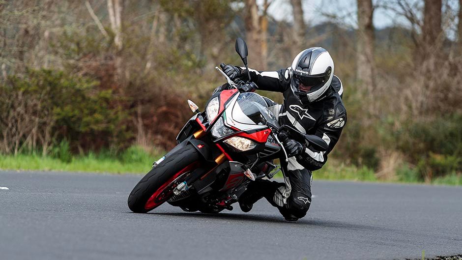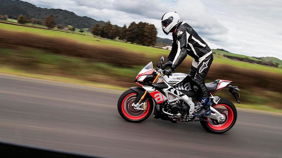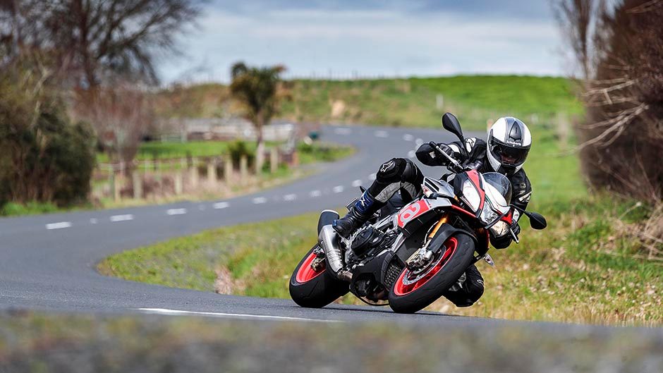 All these factors make the Tuono much more grounded and confidence inspiring to ride. Turn-in speed and direction changes are achieved easily without feeling nervy, and you can deck it way over to silly levels without anything touching down. It’s frisky and fun.