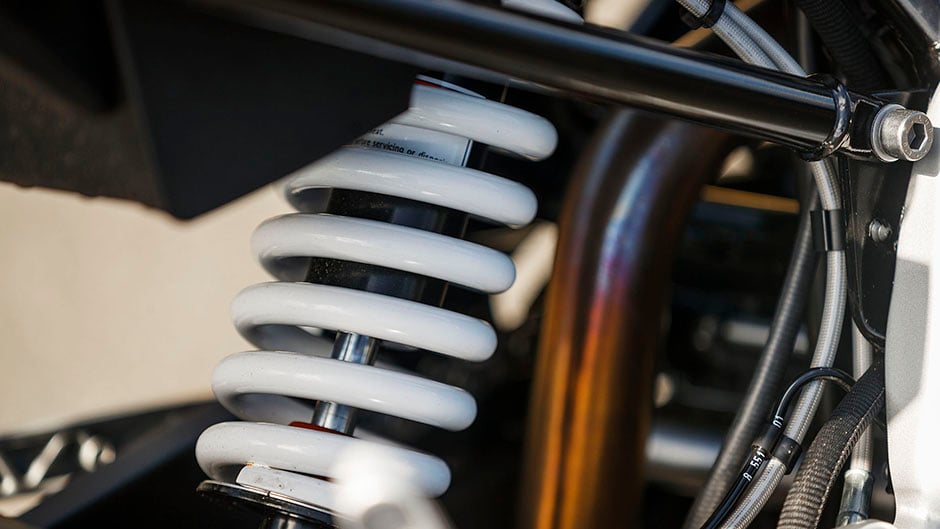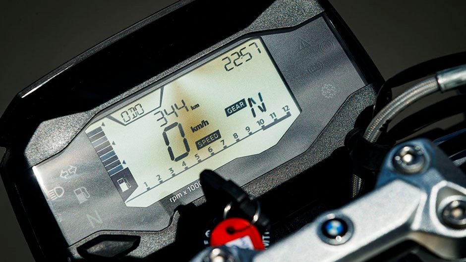 Normally the exhaust header emerges from the front of a motorcycle but in the case of the G 310 R it’s the other way around. This means a longer swingarm is possible, conferring more stable handling. And it certainly is that, holding a line beautifully. You can have real fun on this, hanging off easily and with good ground clearance.