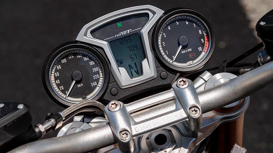 So the bits and bobs on it aren’t quite to the quality level of the Roadster, the suspension and brakes being more basic, and some bits aren’t even fitted, like the centre stand. The Öhlins USD forks are ditched in favour of regular unadjustable conventional 43mm forks, and the monoshock isn’t quite to the spec of the top R nineT in the range. Moreover, brakes are four-pot Brembos but not of the radial type. However, it still has the beating heart of the R NineT sitting amidships, the easy going muscular air-cooled 1170cc twin barking through an exhaust that we’d be in no hurry to change.