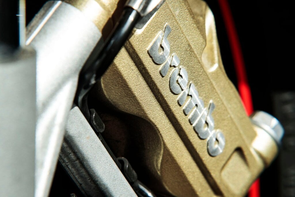 Course this bike is all about quick thrills and it does handle something wicked. The frame, wheels and swingarm are all aluminium so it’s light and feels athletic on the move. Lots of leverage too so it turns effortlessly. Not on a dime though; be wary of turnarounds as there’s not much in the way of lock left to right.