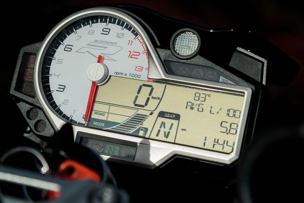 As to speed? It’s a regular weapon. We tried first using launch control and got a sprint time of 3.4sec but promptly beat that by 0.2sec with a regular launch in Dynamic mode (TC partly on). The best we got on level chipseal was 2.92sec. That’s almost as fast as the quickest machines we’ve ever tested and confirms what US publications achieved. Its best overtaking time using launch control of 1.28sec we couldn’t better. One run ended up in a huge power wheelie so we thought better of things at that point. Fortunately it stops as well as it goes; the Brembo monoblocks are simply sensational, some of the best brakes I’ve encountered ever on any bike. That’s plenty reassuring given the potential for speed. Mention of which, BMW rates top speed at “over 200km/h”. Yeah, nah. Perhaps if you only use third gear.
