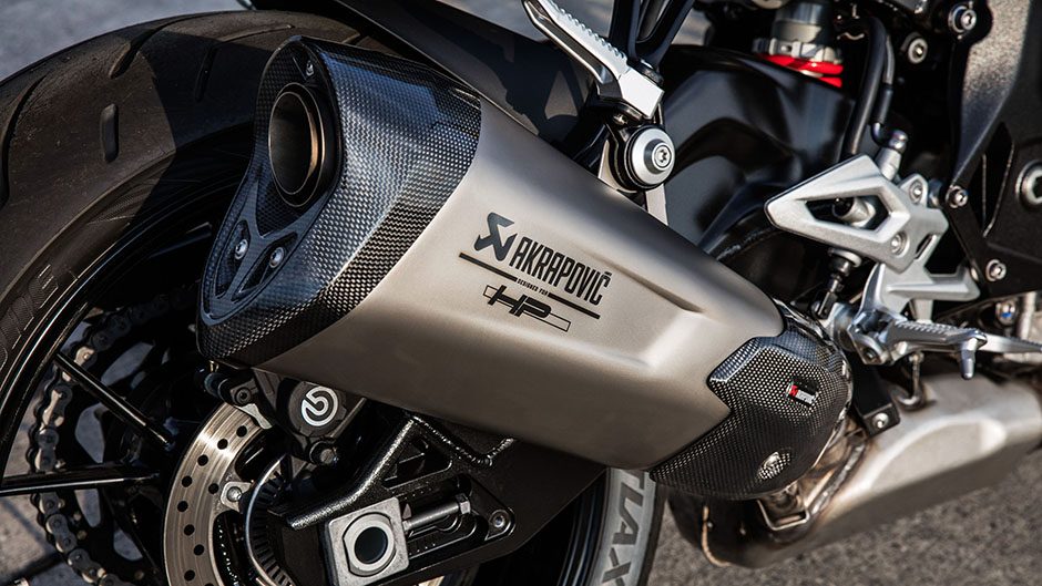 Rubber mounts for the handlebar evidently dial out the vibrations that irked with the original. On track it feels almost as quick as the RR, and that’s confirmed on the speedo. It too can hit 250 clicks up the hill. With the extra bar leverage it tips into turns more easily, but it’s not quite as stable under full gas out of the slower turns, probably because you’re not weighting up the front wheel as much. So it just wants to paw the air on the gas. We leave the antiwheelie device on, sticking to Sport rather than the Track mode which dials the electronics down.