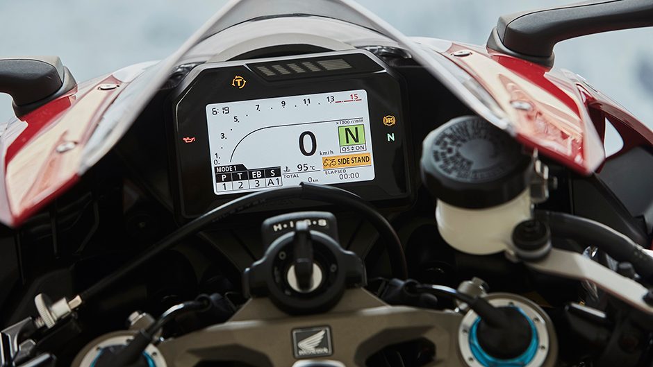 There are numerous changes to the new Double R but two are key. It’s power to weight ratio gets a boost, thanks to a weight cull, and a decent hike in output. Moreover, the Fireblade finally gets a proper electronics package, consisting of ride-by-wire throttle (so engine modes and TC), along with an IMU that permits, among other things, cornering ABS. But the lesser upgrades are just as noteworthy. For example, there’s a flash new high resolution LCD screen with a layout that’s straightforward.
