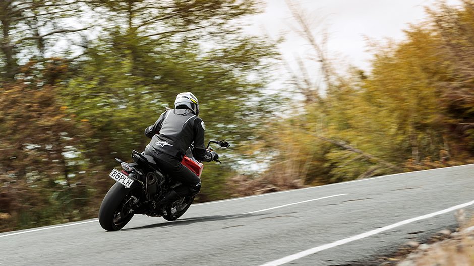 Best to keep things percolating above this point and from about 3500rpm it really begins to hit its straps. From 6000 it rushes towards the limiter at 9500rpm. I tend to ride most bikes using the midrange but this is such a firecracker of an engine that it kind of encourages you to hold on longer in each gear.