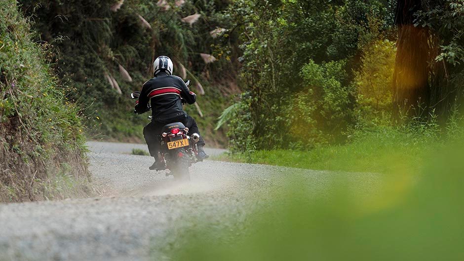 That not insignificant drawback is unfortunate because otherwise it’s an easy and rather charming thing to ride. It doesn’t weigh a whole lot, under 200kg, and with a sit-up-and-beg type riding position and wide, slightly raised bars there seems an almost ridiculous amount of steering leverage. Cornering is an absolute delight, with almost no resistance to changing direction, due in part to the compact transverse V-twin engine, and gobs of ground clearance.