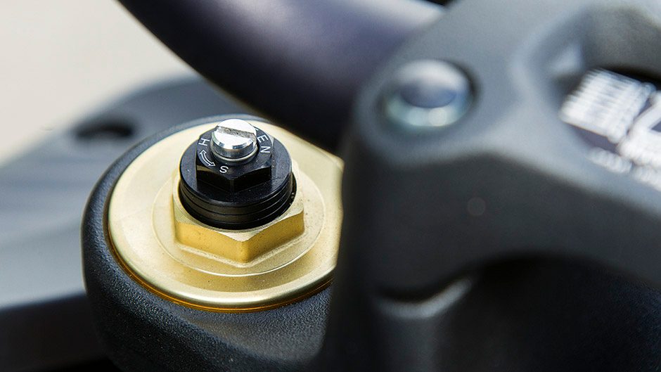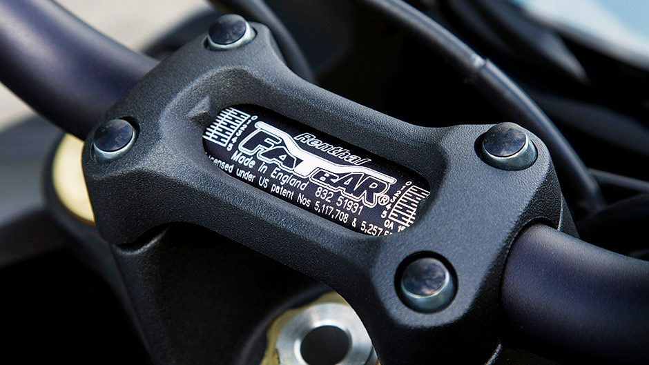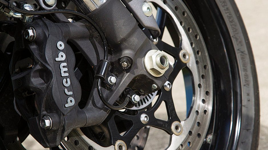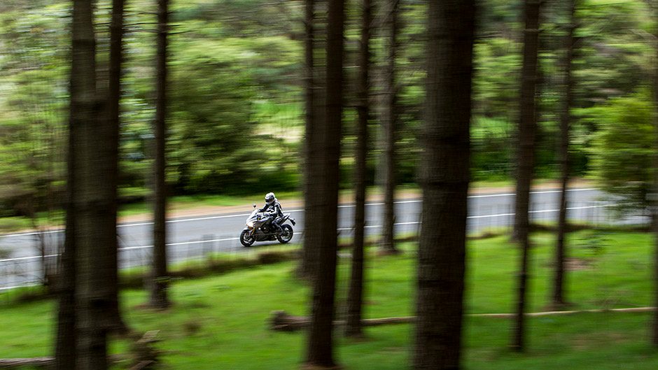 On the subject of ease of use, the riding position is ideal for two-hour rides. There’s a hint of a stretch to the low rise handlebars, the wind pressure taking the weight off your wrists above 100km/h. Pillions don’t fare so well; this is designed for infrequent two-up use. The suspension is fairly well sorted. New inverted 43mm forks by KYB feature full adjustability, and the shock is adjustable for preload and rebound. Initially the bike felt a bit firm both ends, but a few clicks out of the front and rear improved things. Suspension works fine on smooth roads, and while bump absorption on rougher tarmac isn’t perfect I’d rather this than a jarred spine. You do notice it’s not quite as quick to turn as the superbikes either but they’re special, and in-turn stability is excellent. The lack of sheer weight helps inspire confidence, and aids with braking too. You get places quickly on this thing, for sure.