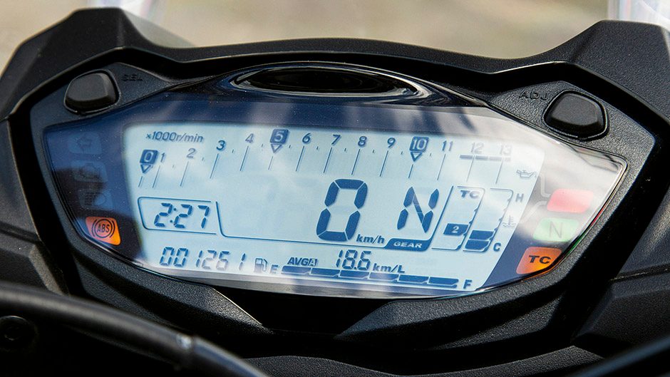 The engine isn’t just a grunter either. In town, upshifting at 4000rpm away from stoplights sees the cars behind you quickly turn ant-sized in your mirrors. At that engine speed, the inrush of air through the intake system is only just starting to sound interesting. There are no engine modes which can make throttle response seem a bit abrupt at times but this bike is for experienced riders who will quickly adapt. And with three levels of traction control available, there’s always a backstop for the hamfisted. We left it on ‘1’ most of the time. Suzuki says the middle setting is good for ‘regular’ riding.