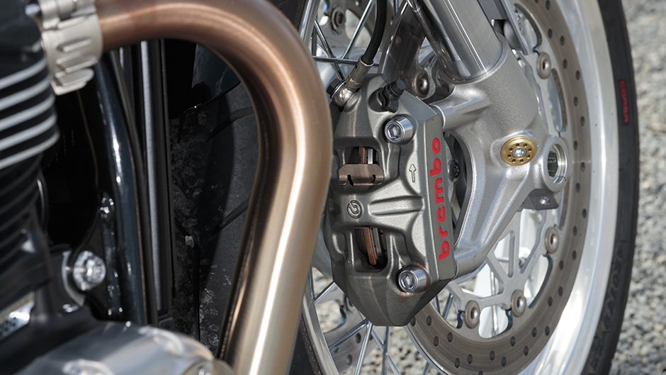 Arguably the one thing the Triumph boffins didn’t get quite right is the frame of the Thruxton R. Not that it’s defective in any obvious way, far from it, but rather because it is the same as that of the T120 on which the Thruxton R is based. The steel frame is heavy so the sportster scales up at around 225kg. That said, the weight is only really noticeable when manoeuvring the Thruxton off the side stand and about the garage. Here, the not so great steering lock is evident too.