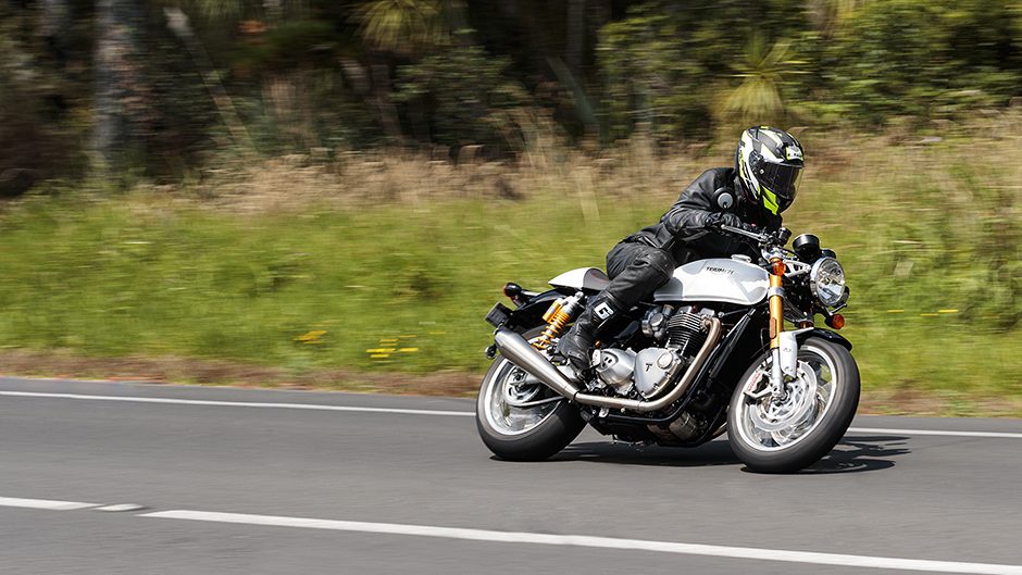 “You will really like this one”, says Mike, Triumph NZ’s effusive product guru, handing me the key to the last Thruxton R, its Ohlins, Showa and Brembo bits gleaming in the sun. “You say that about every Triumph” I counter. “Yeah, well, they’re all pretty good, right?”