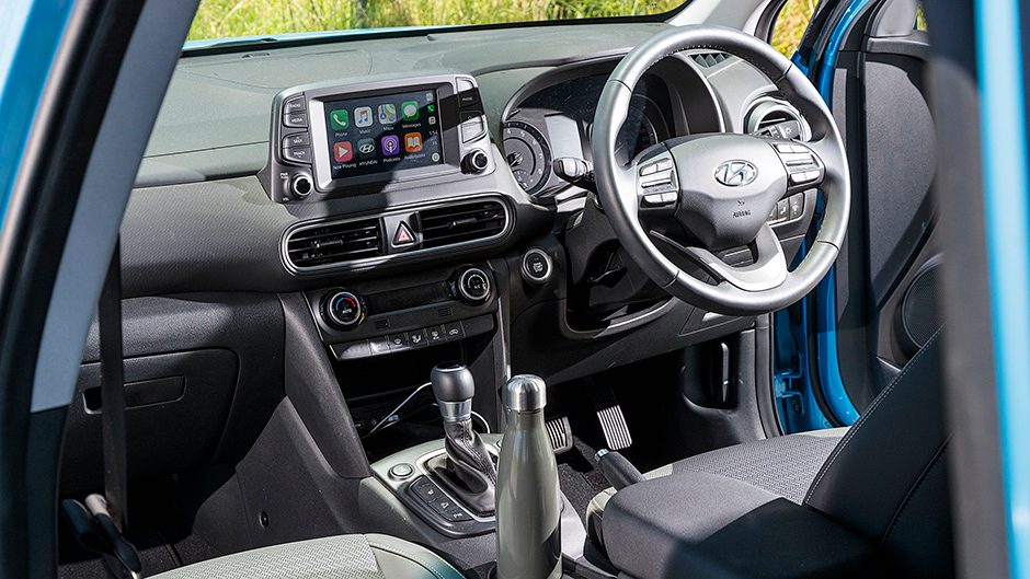 Still, you don’t get some of the best dynamics in the class without decent amounts of rubber, and this thing really can get down through the turns. It’s not that big, being slightly shorter and wider than a CX-3 but with more rear seat stretch space. At just 4165mm overall, Kona is genuinely compact and a U-turn requires just 10.6m of space. That makes it really easy to place on road, aided by quick, well weighted steering (2.6 turns between locks).