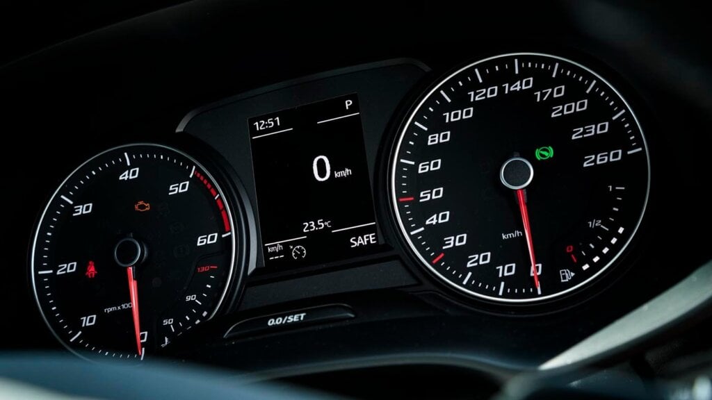 The turbodiesel gains the benefits of 4Drive, Seat speak for AWD with the fifth-gen Haldex unit delivering on-demand traction. This gives plenty of bite off the mark; if you manage to activate the launch function, take offs are accompanied by a jolt from the rear diff as the torque hits. But it’s pretty quick, registering a 7.4sec 0-100km/h run on a stinking hot day.