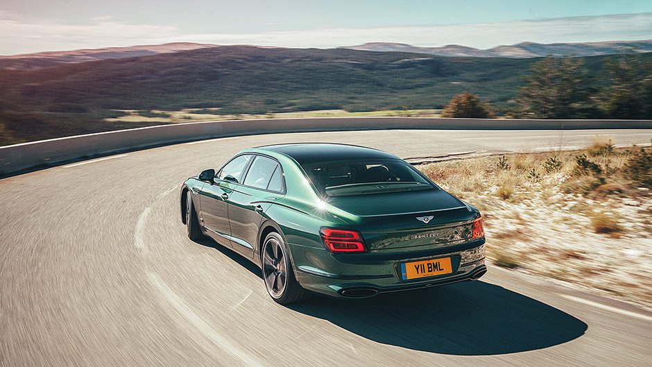 But as yet we haven’t touched upon the most surprising aspect of the Flying Spur and that’s the ability of this 5.3m car to shrink around you, feeling more like its Conti GT sib in tight going. Only we think it has even better resolve when push comes to shove. Where the Coupe becomes squirrelly at the grip limits, there’s more grit with the Flyer. And despite its longer wheelbase it’s just as keen to turn and burn as the GT. We attribute this to two things, the slightly better weight balance and the introduction of four-wheel steering for the first time in any Bentley. It’s unlikely to be the last.
