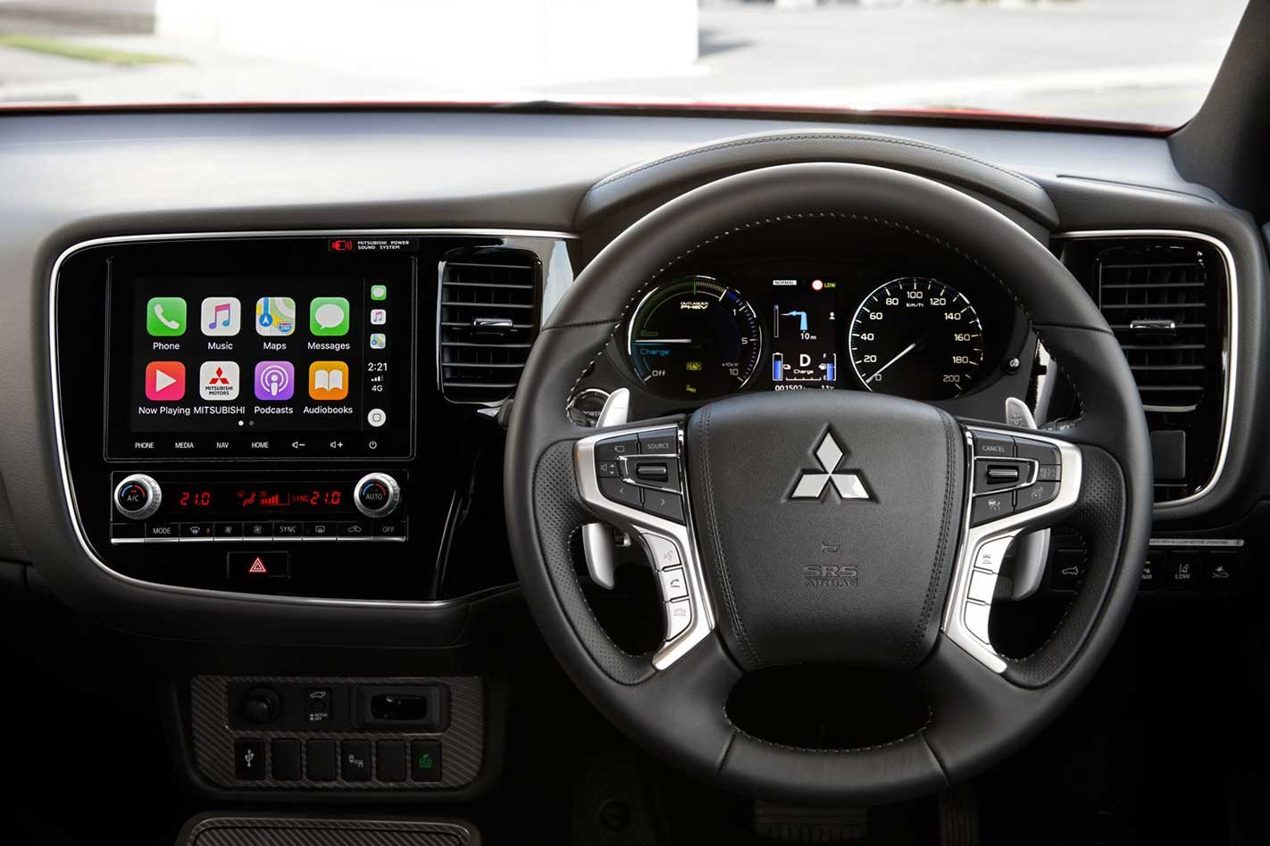In terms of day-to-day amenities, the Outlander PHEV’s improved seat cushions do feel more supportive around the lower back than before and the updated infotainment system with Android Auto and Apple CarPlay integration across the range works well too. Unfortunately, the system eschews any physical buttons or switches in favour for small touch sensitive controls, which can be tricky to operate when on the move.