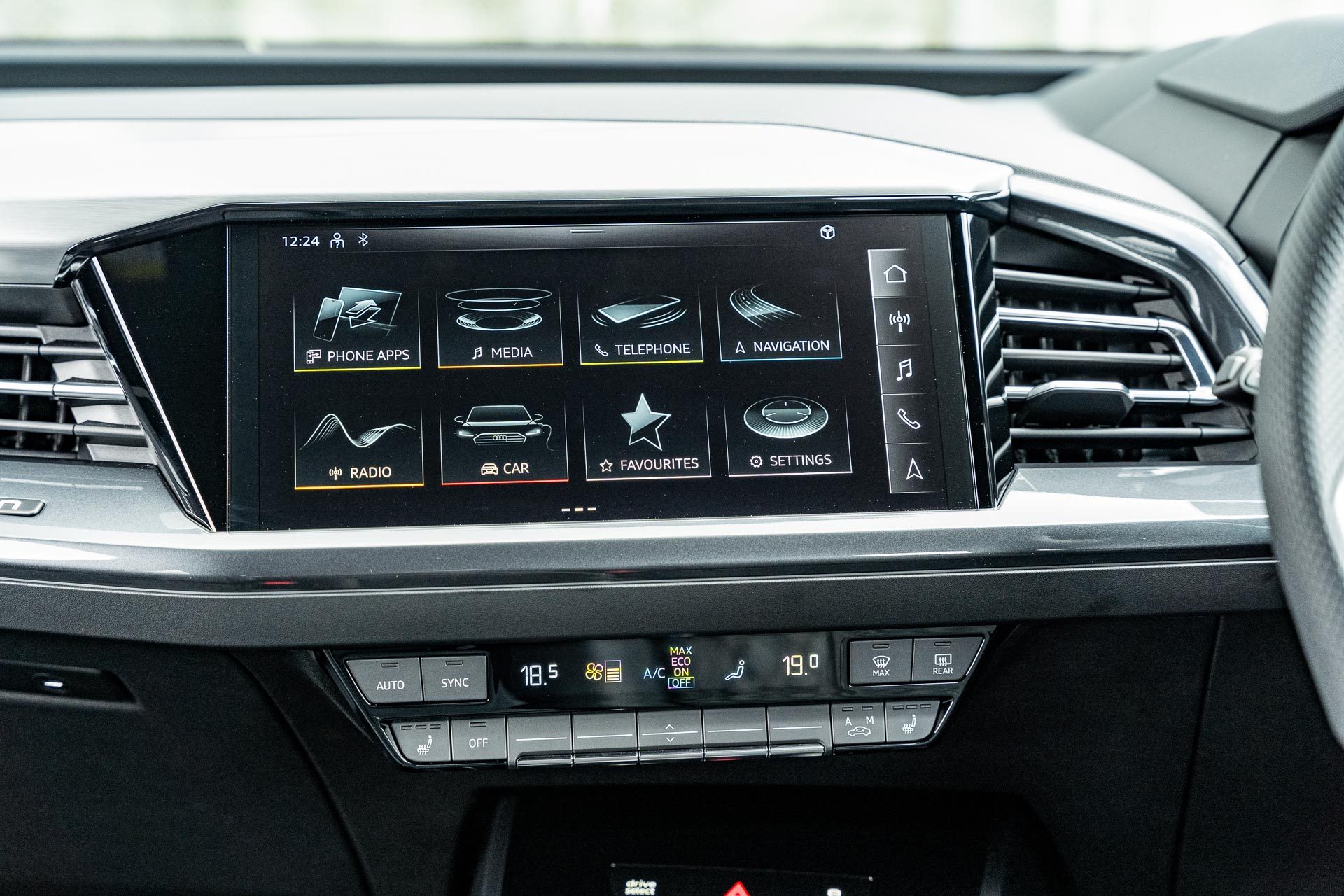 It’s quite hard to judge the extremities of the Q4 from the driver’s seat (S line items well bolstered if a little firm) but you can summon the surround view camera easily to help out there, even if the 360 degree imaging should be better for this price category.