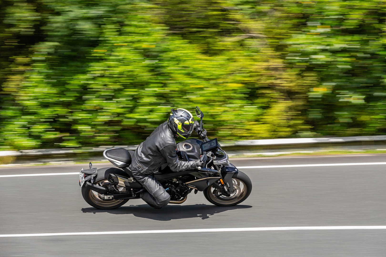 Cruising at 100 feels supremely relaxed, with scarcely any vibes, and the riding position is easy going, comfy, primed for streetfighter antics. Lots more speed is an easy twist of the wrist away, without being superbike silly.