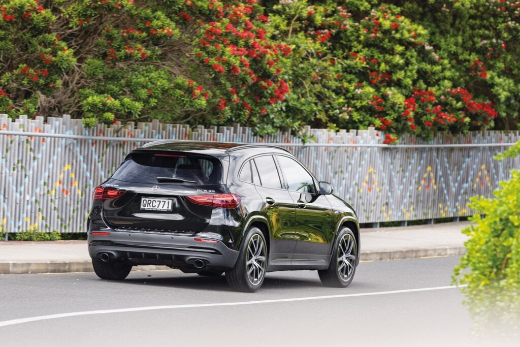 Anyhow, on our trip up north, the GLA 35 was consistently sipping fuel in the late sevens (claim 9.0). Cruising on average chip-sealed secondary roads, you really get no idea of what the 35 is ultimately capable of. On your own, in either of the Sport modes, this is a tearaway, cornering avidly without screaming blue murder. The rubber helps, as does the adaptive damping to keep the body roll in abeyance. And it steers with interest while brakes are up to the task. But the family probably won’t thank you for driving this way. Well, perhaps the kids might for a bit until they lose their lunch.Â