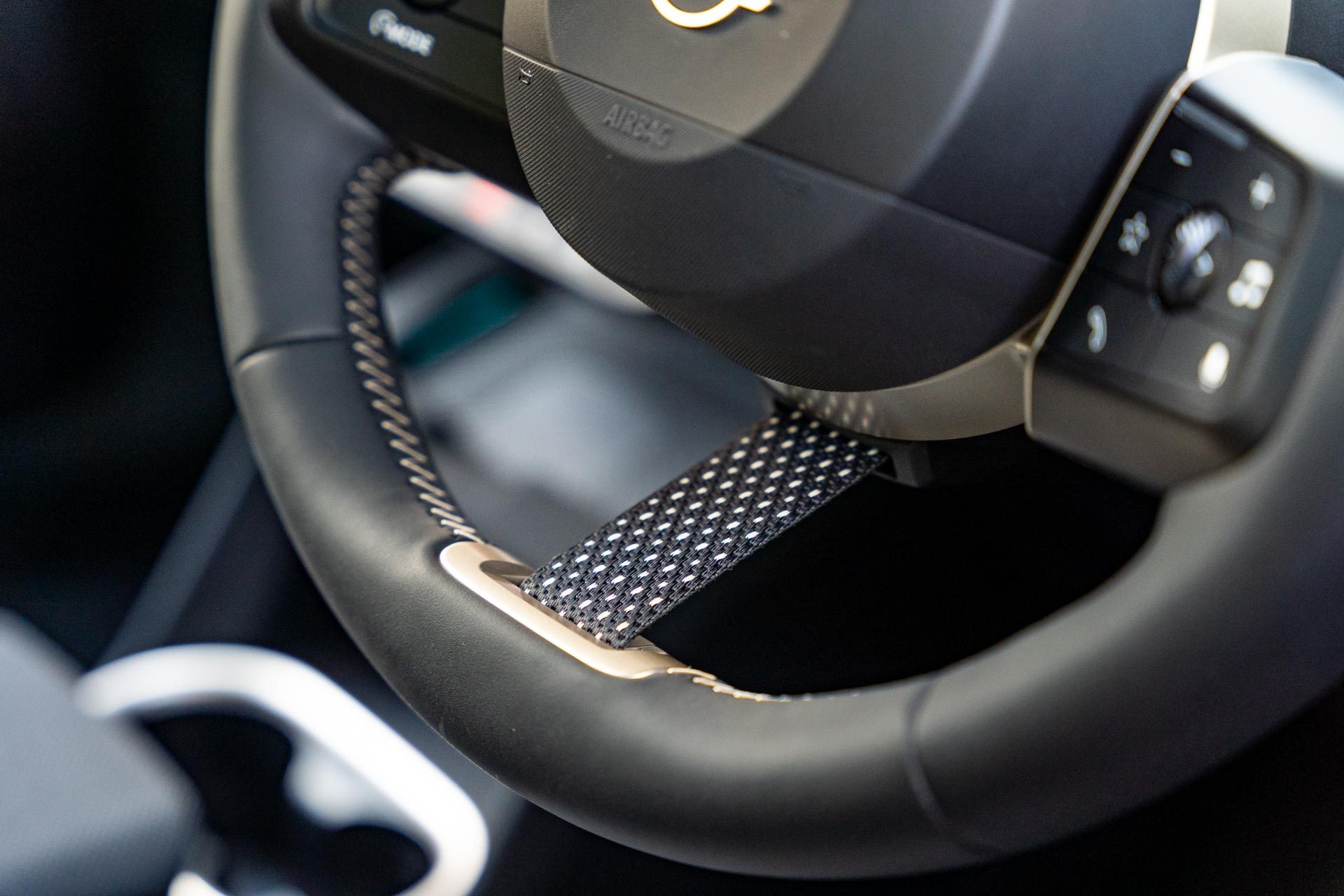 There’s no pushbutton on or off; that’s not quite different enough for Mini so instead there’s a switch you turn one way or another to stop or start the vehicle. Adjacent to that is the ‘gear lever’ which is more accurately an up or down switch.