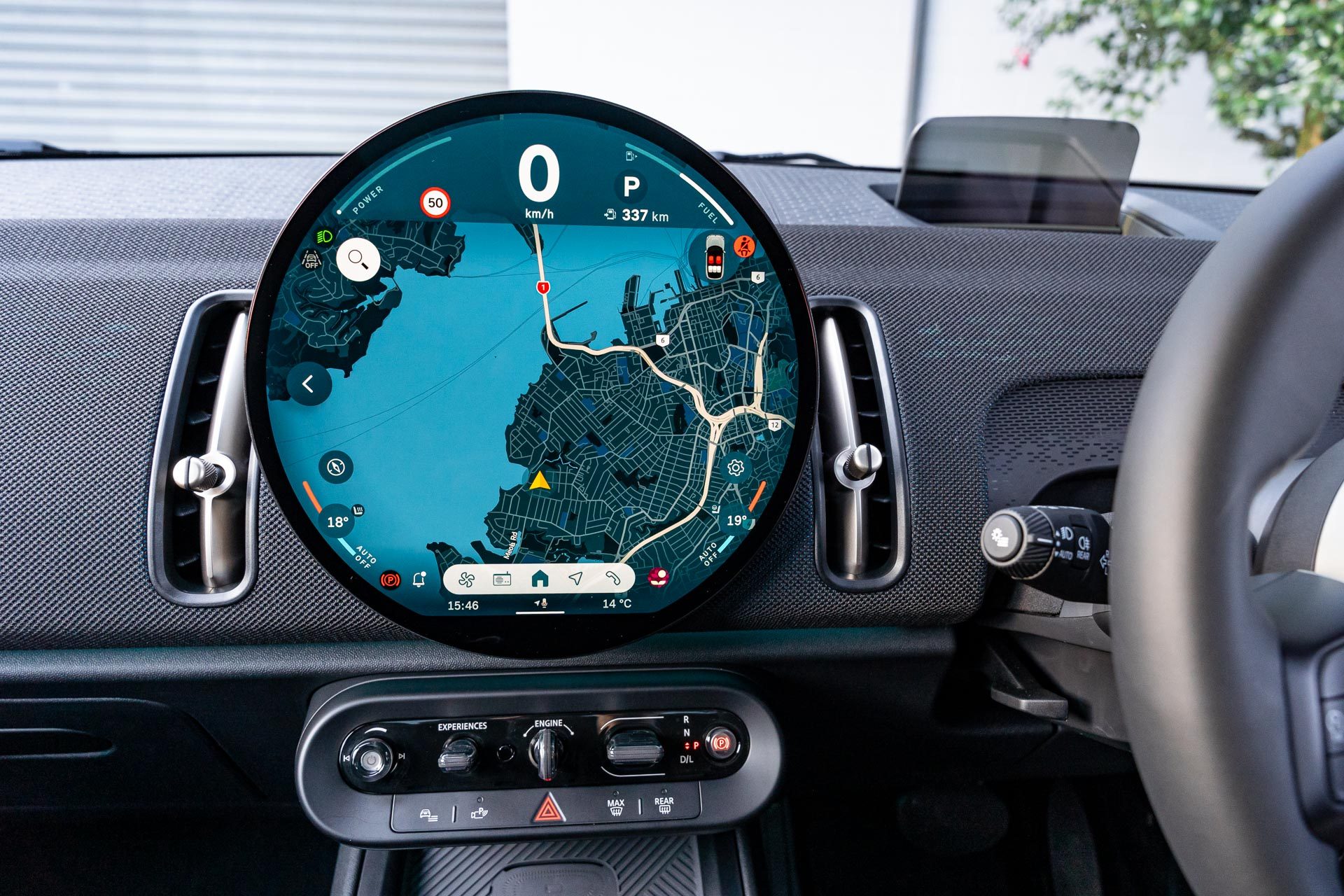 It was positioned too high initially and it takes a (long) while to work out where the relevant HUD submenu for repositioning this is. And that’s the infuriating thing about the circular central touchscreen.