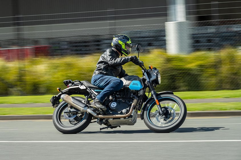 Not likely a jet with just 18kW to its name. Royal Enfield’s Scram 411 is more the two-wheeled urban runabout, a multitasker for motorcycling newbies.