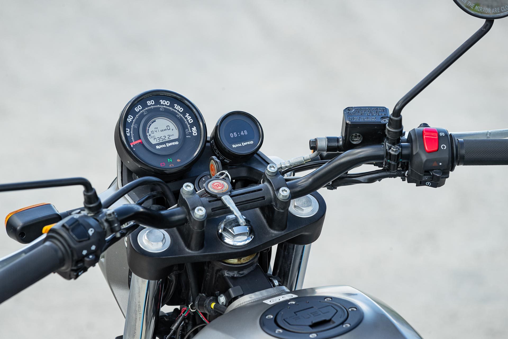 Dials are distinctly old school, with an analogue speedo, but there’s also a Tripper navigation pod that can display Google Maps directions once the RE phone app is activated.