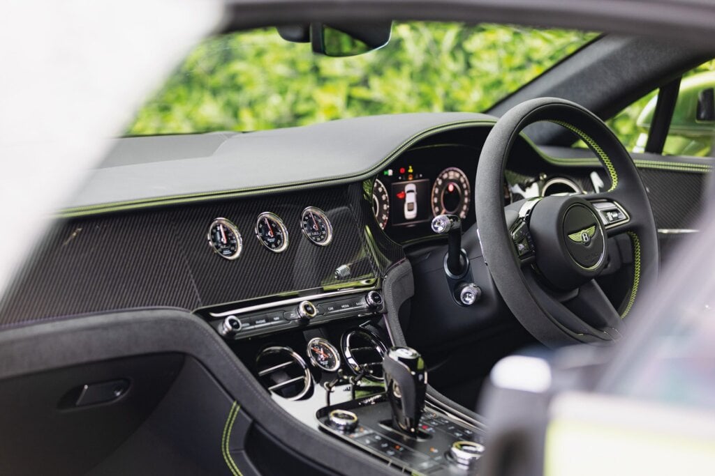 Inside is familiar, while seats and infotainment are updated. Our particular drive car featured carbon fibre inserts rolling around into the door cards. Some reckon Bentley dashes should be full of wood. However, this is the performance model.