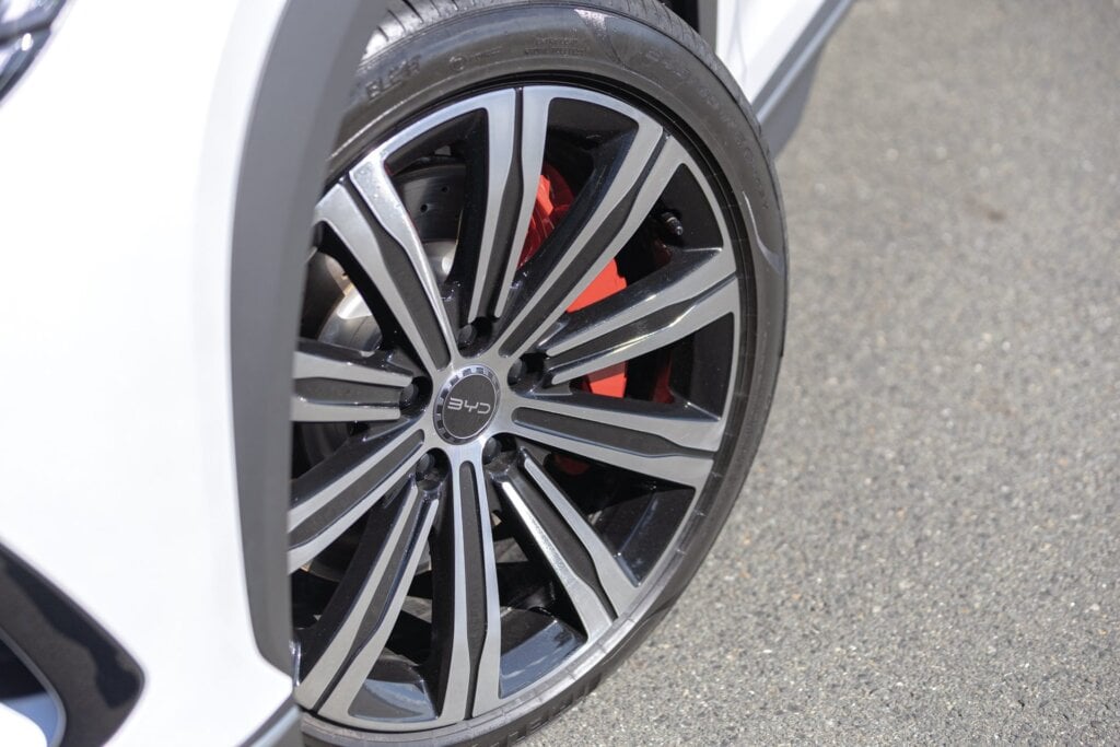 This gets a slightly bigger battery (83kWh) of the Blade LFP variety compared with the Tesla’s 82kWh NMC type. The latter offers more range of 533km compared with 456km for the SL7P. Reasons? Aeros, battery chemistry, software tech, motor efficiency and weight all play a part, with the BYD scaling up at 2340kg. However, the Sealion 7