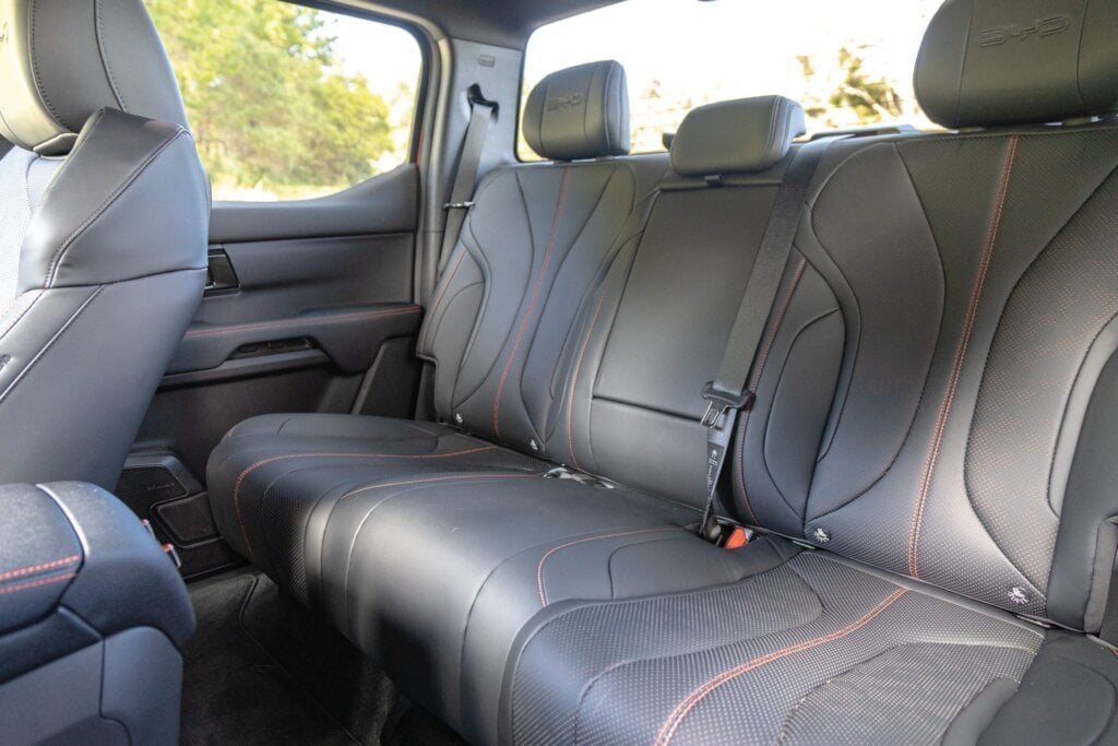 They each have a roomy back row with a comfortable bench. The BYD has a three-pin plug back there and some USBs, its flat floor giving better legroom for everyone.