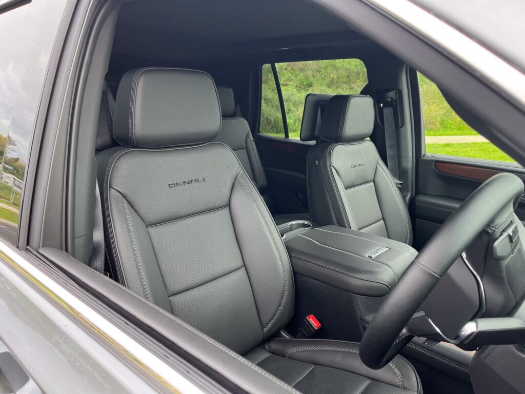 On the safety front, I was surprised by the passive nature of the driving assistance systems in the Yukon. Systems such as adaptive cruise control, lane keep assist, and forward collision assist come as standard, but it skips out on any sort of driver attention monitoring. The lane keep assist and parking assistance systems are connected to vibrating panels in the seats, which is quite an alarming sensation at first, and takes some getting used to.