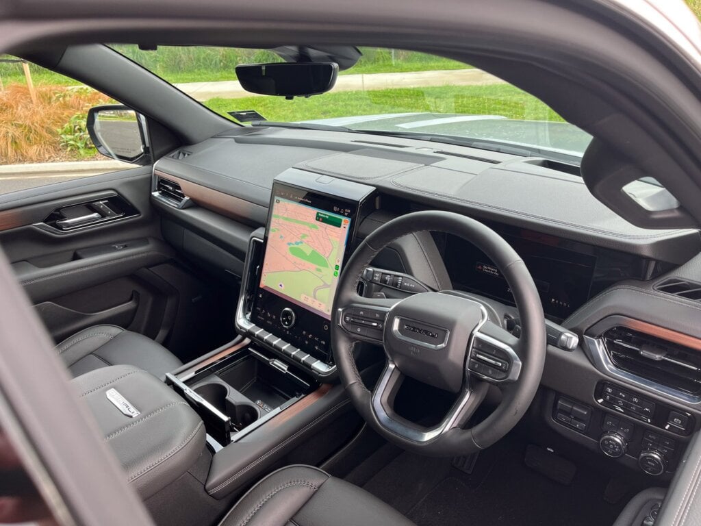 Starting from $184,990, buyers in New Zealand are offered just one Yukon model — the range-topping Denali. For context, this sits atop the Yukon range in the United States. As standard, the Denali gets a 6.2-litre petrol V8 which is paired with a ten-speed auto and a selectable four-wheel drive system. If this all sounds familiar, it’s because it is the same powertrain found in the Chevrolet Silverado 1500, also sold locally by GMSV. In the Denali, the eight produces 313kW and 624Nm, which will send it to 100km/h in 7.2 seconds according to GMSV. Though this performance figure isn’t impressive by modern performance SUV standards, it’s worth remembering the Yukon is a body-on-frame SUV that tips the scales at over 2.8-tonnes. Continuing the larger than life theme of the Yukon, the trimmings are no exception with its 24-inch alloy wheels and a massive chrome grille. It also gets automatic sidesteps that pop out from beneath, helping with the ascent into it.