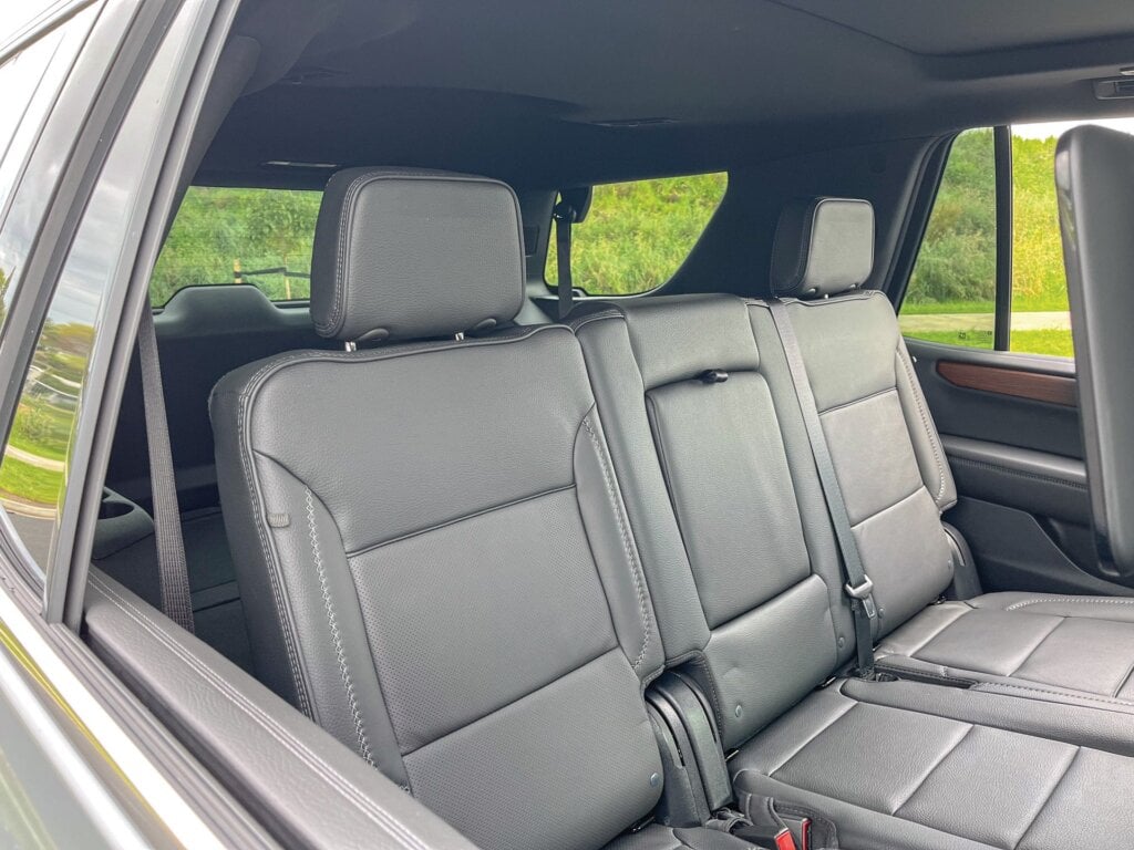 The comfort levels remain the same in the second row, with a pair of 12.6-inch LCD screens mounted in the rear of the front seats. The seat heaters also extend to the second row. As mentioned, practicality is one aspect the Yukon does well. It can carry up to eight occupants, and still has room for 722 litres of luggage behind the third row when the seats are in place. Fold these down and you get access to 2056 litres. Fold the second row down, and it opens up a cavernous 3480 litres of space — which doesn’t feel far off what’s offered by a small van. Squeezing three occupants across the third row is never an easy task, even with this two-metre wide SUV, so keep that in mind. For towing, it is rated up to 3628kg braked, which represents a best in class claim for large SUVs in New Zealand.