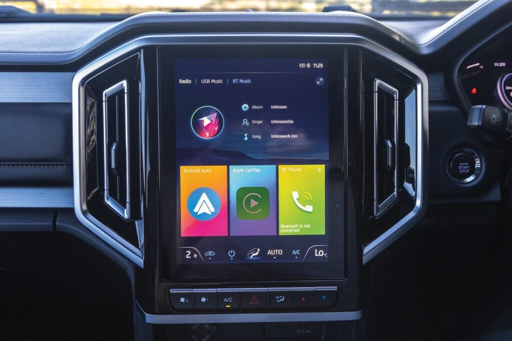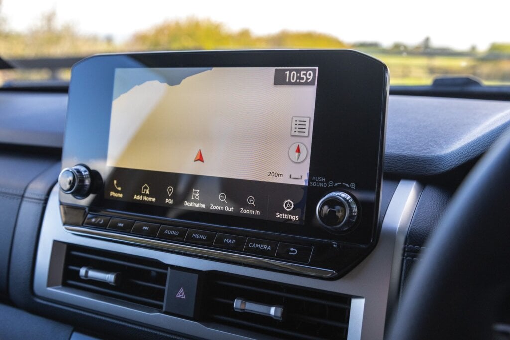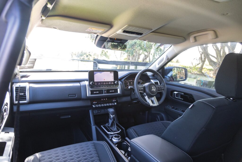Some of the finishing in the Triton is to a price point, the carpet thin for instance, the softer touchpoints applied sparingly. But it’s screwed together well. It’s a little quaint with its analogue dials and smaller screen but, wouldn’t you know, it’s the easiest to fathom. A few knobs and buttons make for easier operations, the main screen is essentially an infotainment interface and it’s the only one with sat nav. The manual handbrake will be appreciated by the farm hands in the paddock.