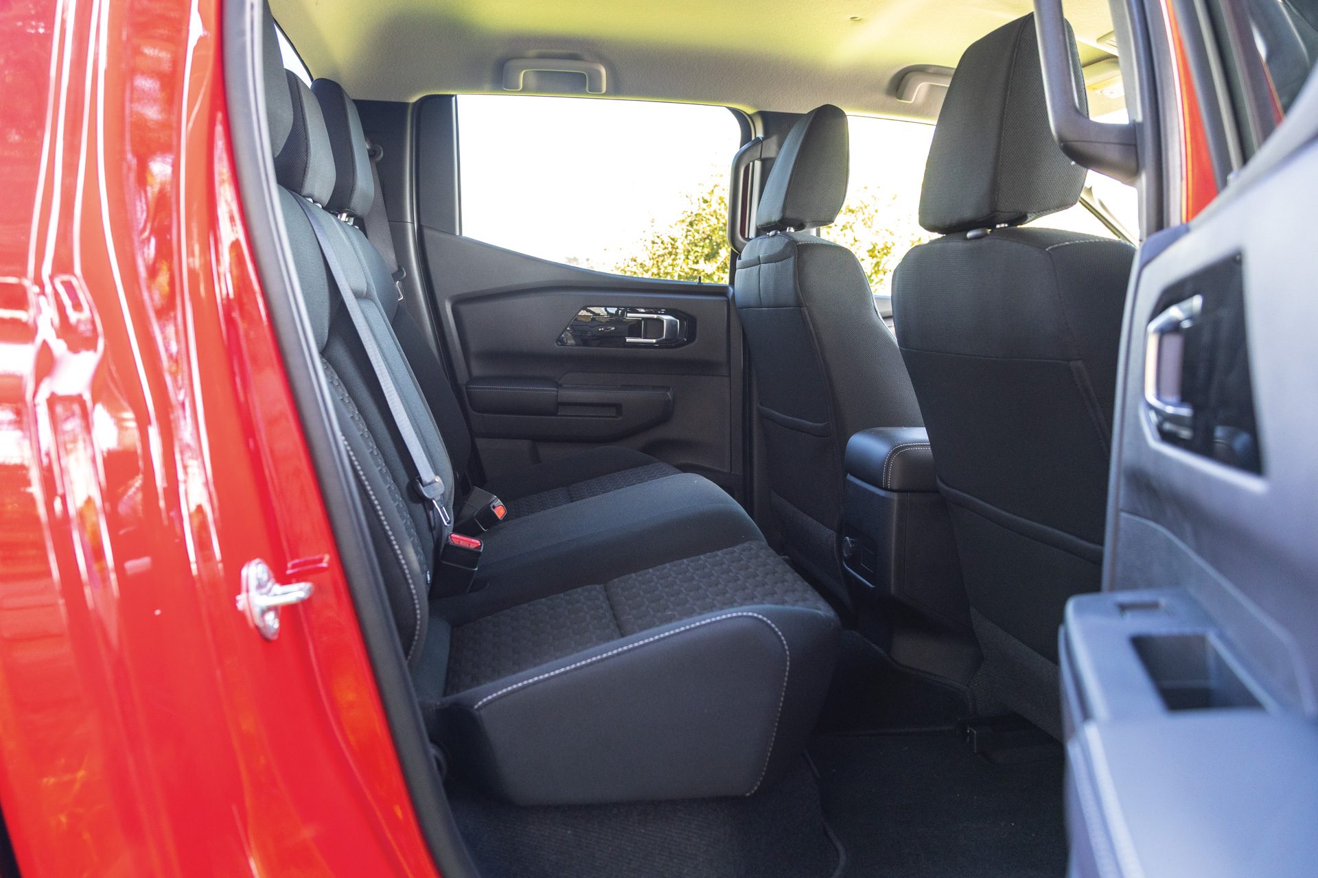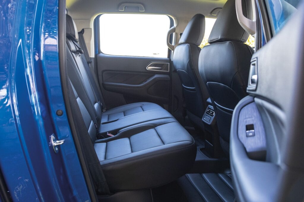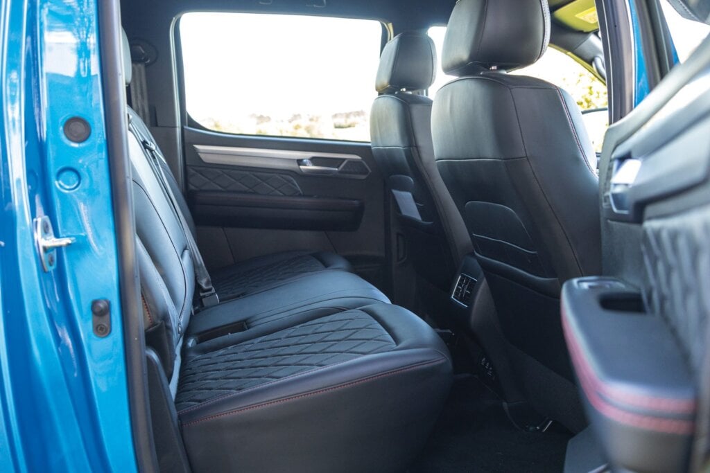 Triton also has a smidge more legroom in the rear but there’s not much between them back there. All have Isofix points, but the Triton lacks USB outlets while the GWM alone lets you flip the seat up if you have stuff to store in the cabin.