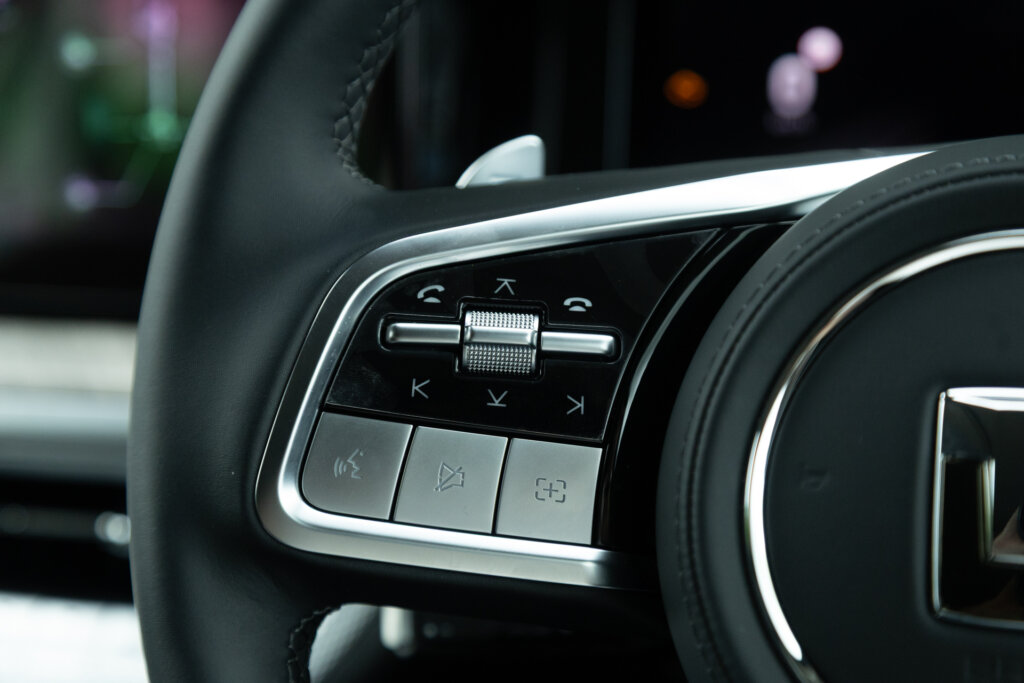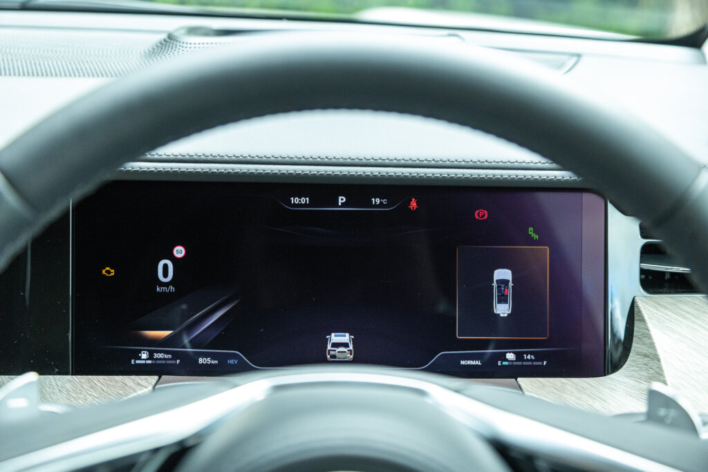 Inside, the feature list is as impressive as it is long. There’s three-zone climate control, Nappa leather accented seats that are heated, ventilated and get a massaging function. It is worth noting that those seat functions are available across both rows. There’s a 12.3-inch digital cluster behind the leather-accented steering wheel, and a 14.6-inch infotainment screen takes centre stage on the dash. This system includes wireless Apple CarPlay and Android Auto, and makes use of a 12-speaker sound system.