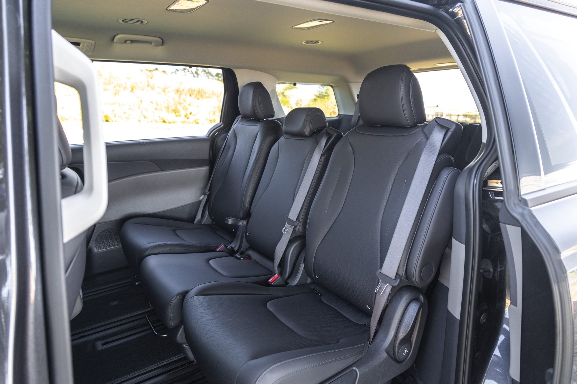 Front seat occupants have ingress and egress that’s hard to beat. For the rear seat occupants, it’s even easier as the side doors automatically slide open. You can then activate the lever on the outside middle-row seat and it slides forward, facilitating third-row access. No problem for an adult to pop back there either. The trio of second-row seats are on sliders so everyone can have the right amount of legroom. It’s all so user-friendly for the occupants.
