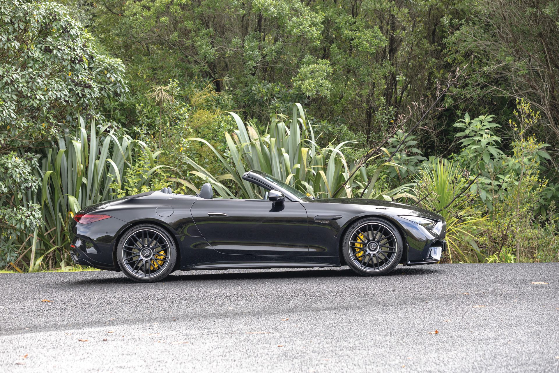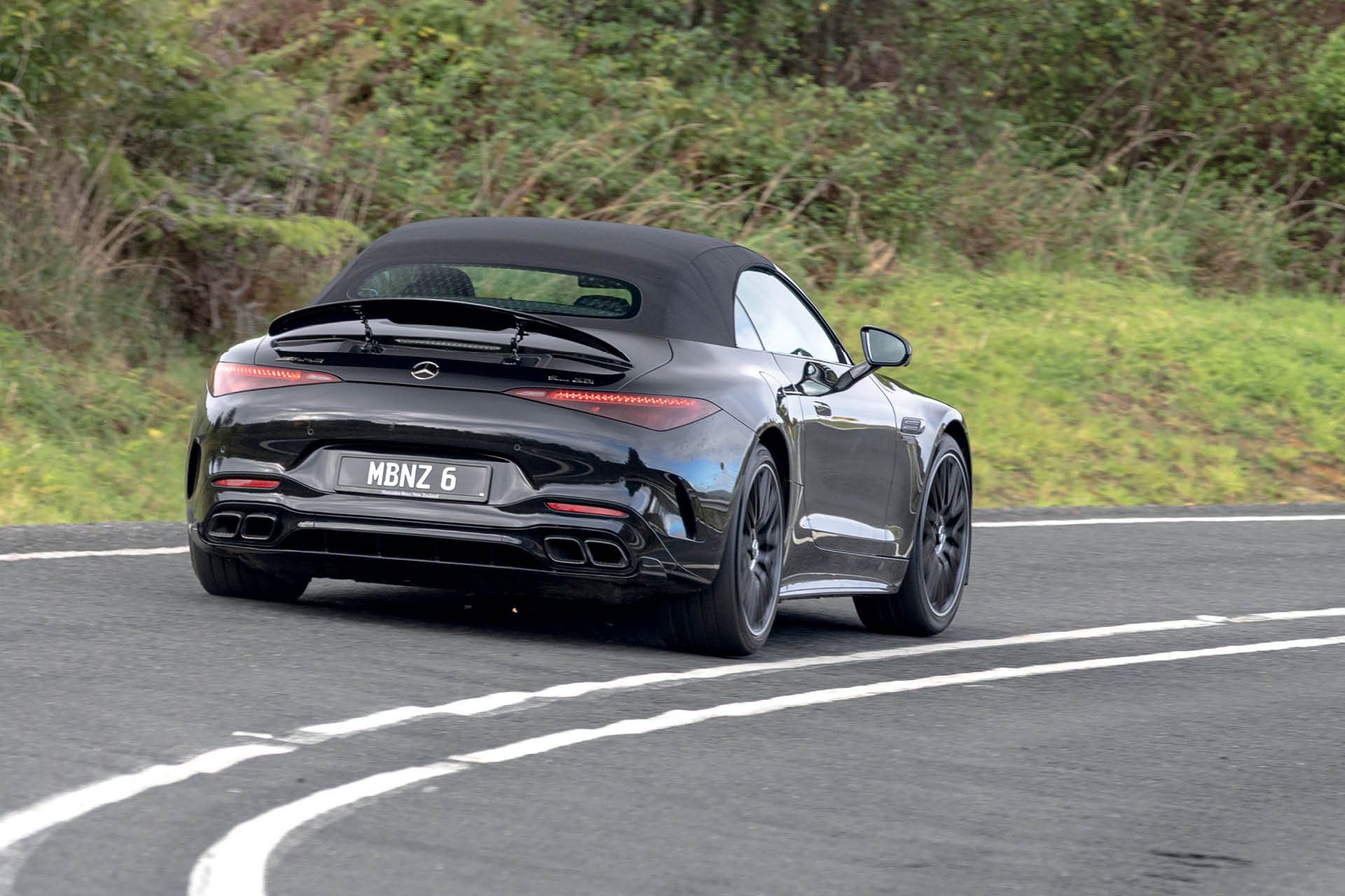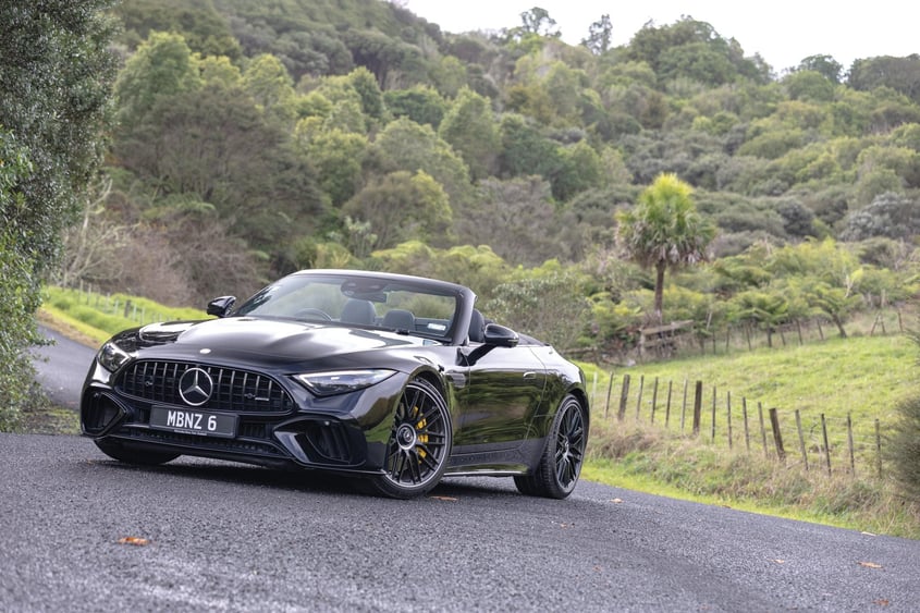 The latest SL draws inspiration from the AMG GT in design, but it shares not a single component. It doesn’t have quite the athletic stance of the big coupe but it’s cool and, like that machine, it sure can hike. Being a small market and roadsters being a minuscule part of that, New Zealand takes just the single variant. And it’s probably the pick of the bunch. This is the third model up in the range, with a very generous amount of performance and specification, albeit at a rather serious outlay: $361,900 before cost option packages. It does come standard, though, with the AMG Dynamic Plus package, comprising active engine mounts, and an electronically locking rear axle.