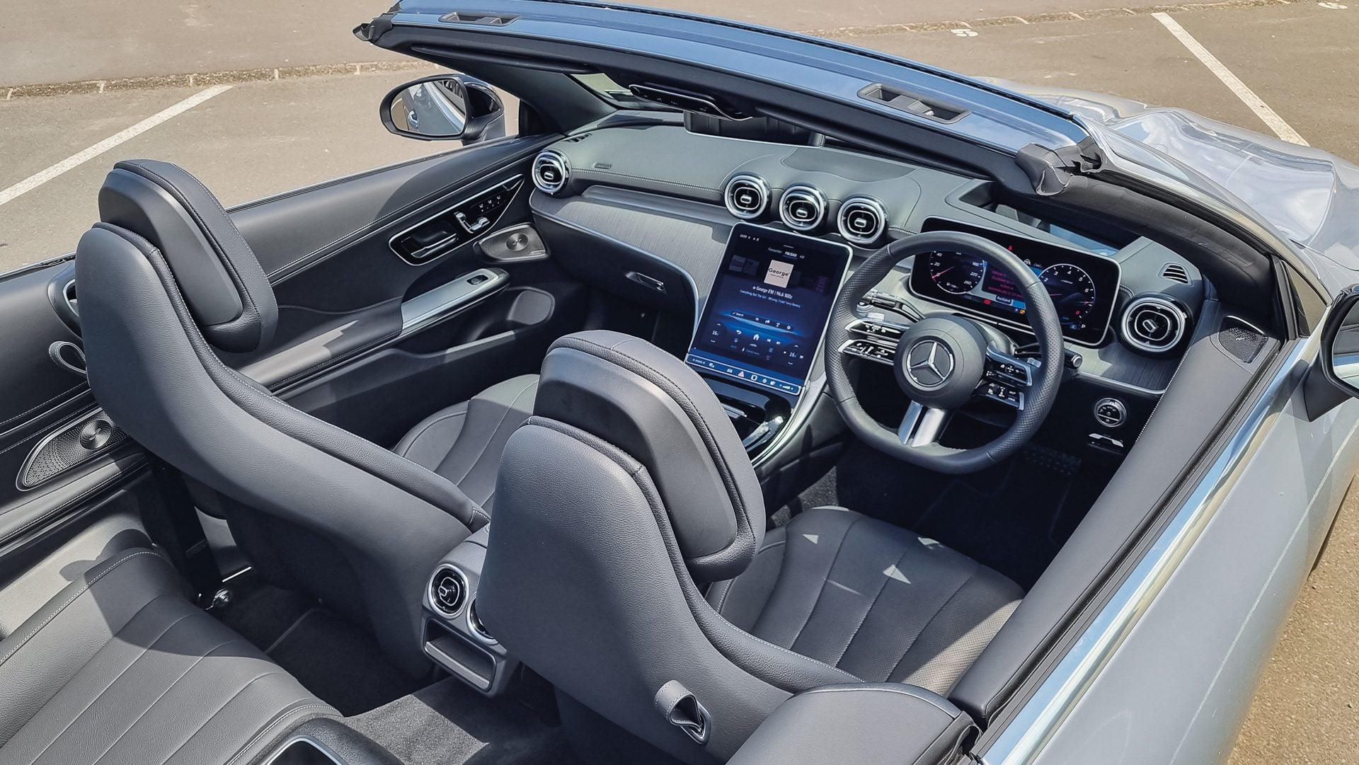 With the roof in place, rearward vision is not great but cameras are on duty all round. Merc’s safety features are top notch, working as intended without constant alerts.