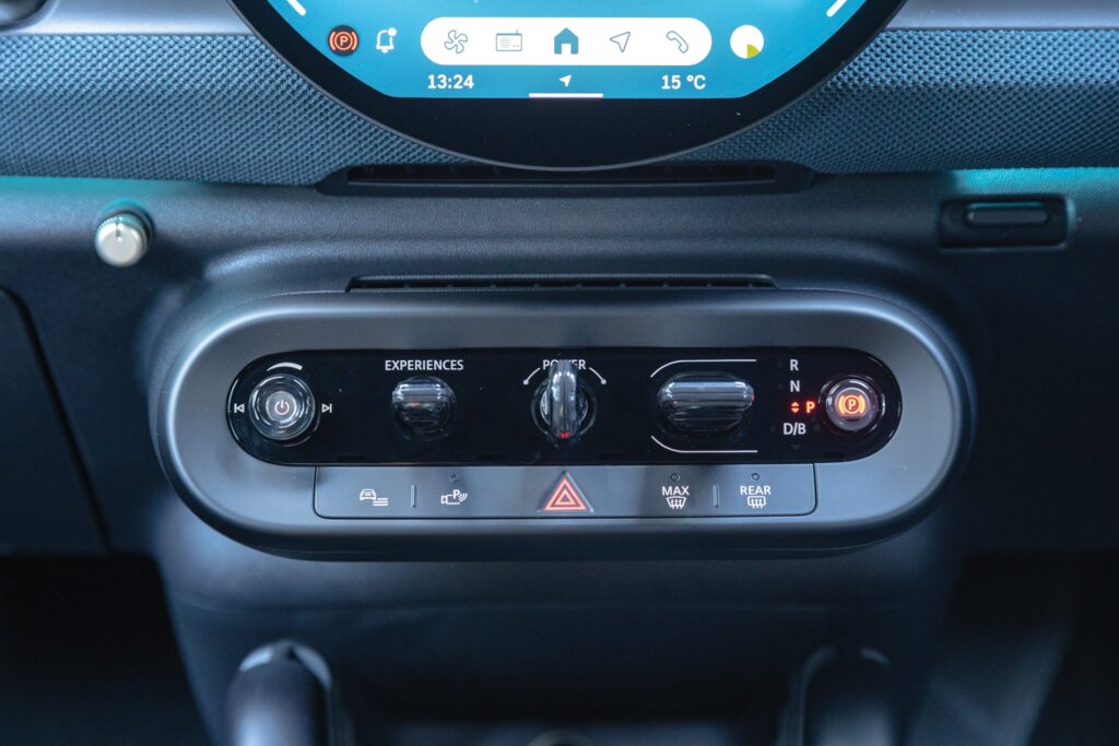 Hop on in (or more accurately ease on down) and the chairs up front borrowed from the JCW Aceman are powered and plush. Even the lumbar pump is exceptional, great if you have lower back issues.