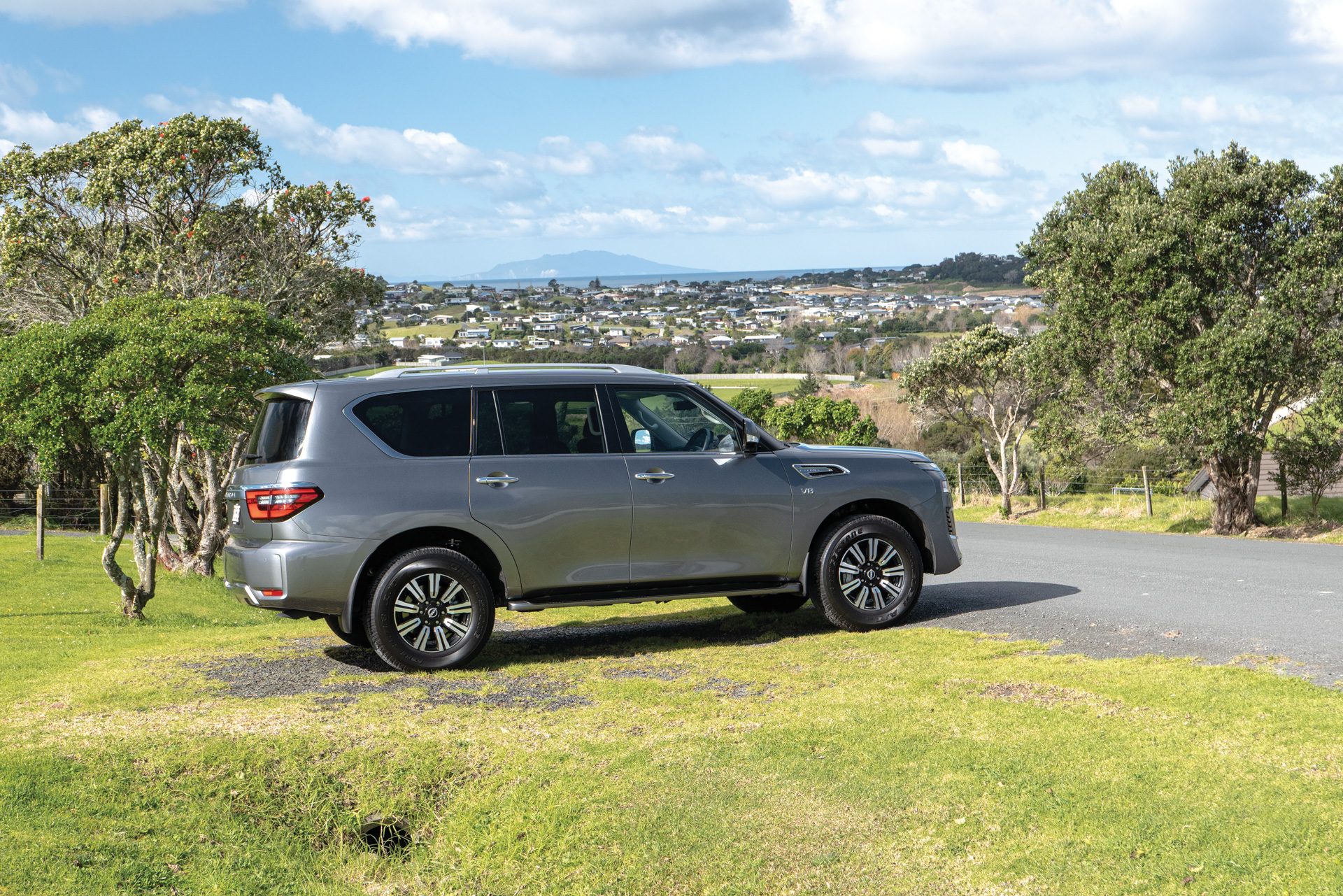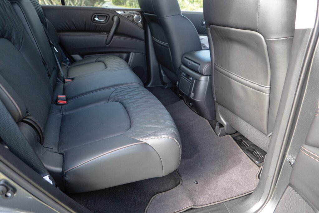 True? Well, not far from it. The look is much improved inside and we like that the tech is simple to use too. None of that touchscreen lording it over you rubbish. Upon clambering up, there’s a lot that’s premium, as there should be for a $119k asking price. Figure on wood and leather, and a lot that’s also old-school. We headed off and a warning chime told us we’d left the handbrake engaged. What? It doesn’t cancel automatically? Where is it anyway? Or, right, it’s one of those foot-activated jobbies. We haven’t encountered one of them since, well, probably the last time we drove Patrol.
