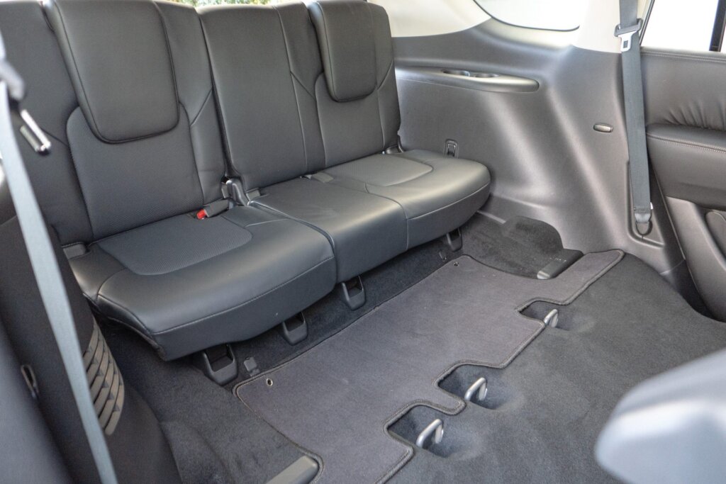 Figure on just the single grade now, the Ti-L going for $118,900. Fancy bits include a premium 13-speaker Bose stereo, a centre console cool box, and a digital high-definition rear view mirror. That seems like a sensible addition given how much of the internal rear view is blocked by the central headrest.