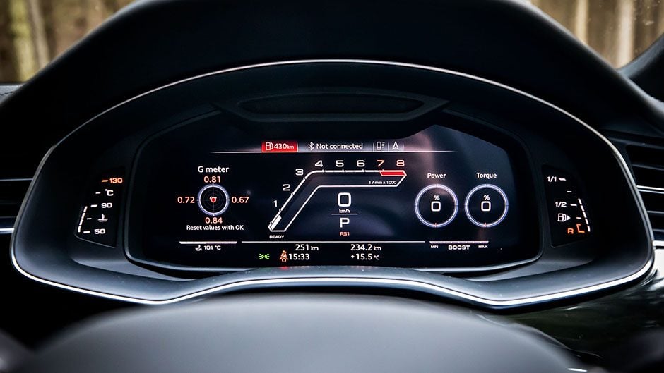 Round the burbs you get a sense of ease and in comfort mode it’s pretty easy going, though not quite as plush as the air suspenders in the RS Q8. But like that vehicle, the adaptive damping seems just right in the ‘Auto’ mode, and whenever it feels out of sorts (not often) and a pull back on the shift lever to Sport transmission mode rattles its cage again.