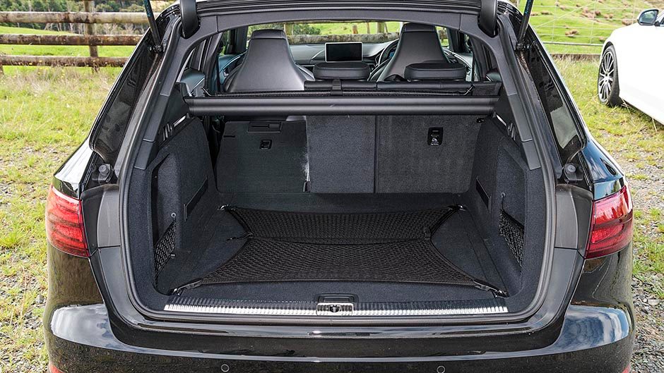 With the Virtual Cockpit, two instrument views are possible in the Audi, only one in the C 43. And on that, you see more out of the internal rear view mirror in the Audi because of its lower profile headrests. The C 43, however, has a superior luggage area layout, its cargo blind much easier to remove and replace. But the Audi has a real spare under the load bay, the Mercedes a pando kit.
