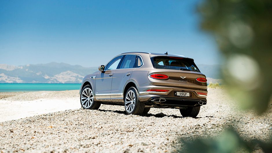 It’s at the rear where the most noticeable changes have been made, with a new tailgate shape (proudly wearing Bentley lettering), while the oval taillights are now more in line with those of the coupe, echoed in the reshaped exhaust outlets, and the spoiler is bigger. New 22-inch wheel designs round out the external changes.