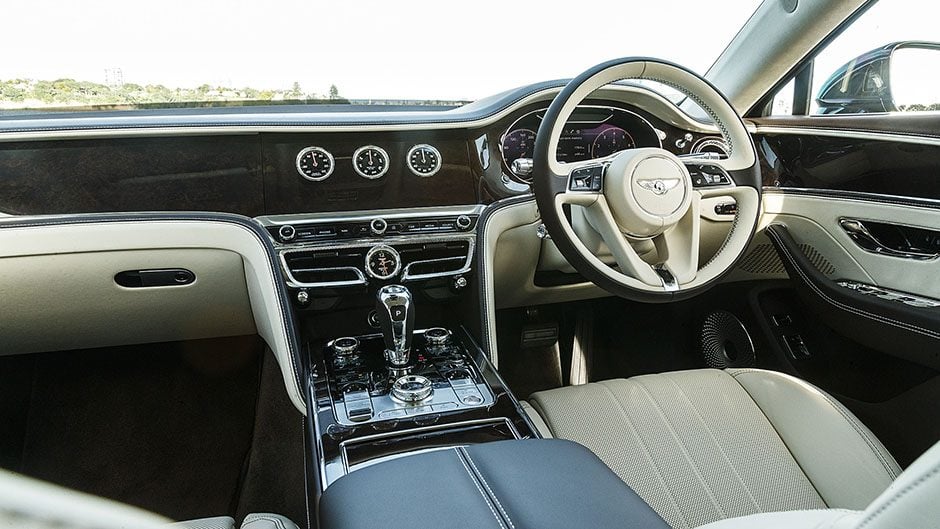 Up front the cabin’s exquisitely lined, with fine, hand-stitched leather everywhere. The seats are big and encompassing, accommodating of a frame nourished more with beef than broccoli. They adjust every which way and deliver a thorough massaging too.