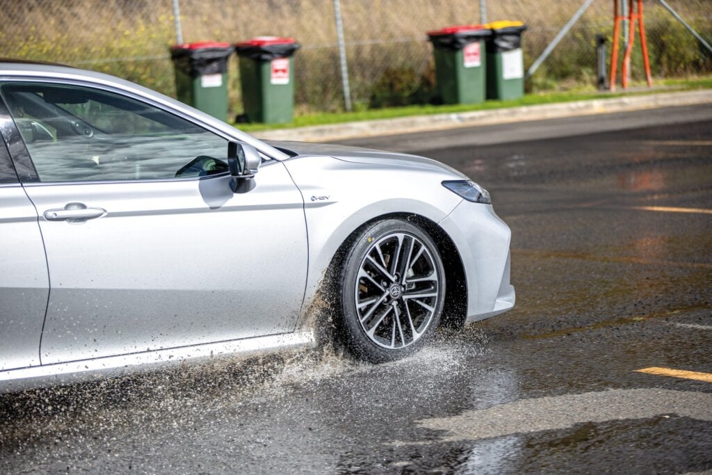 We took three cars, a Toyota RAV4, Camry and CH-R, all fitted with Turanza 6 rubber, for a loop of Sydney on a cold, wet day. Setting off from the CBD, we headed north through the suburbs to Bobbin Head, traversing a variety of urban, motorway and highway surfaces, ending up at Sydney Motorsport Park. By then the skies had cleared and the tarmac had dried. Which was good for the dry slalom test with the RAV4, where the rubber performed well. For the wet handling test I stepped into the Camry. I was quite impressed with the cornering abilities of the Turanza 6 in the wet. Putting the Camry through the slalom course, it sure was stable. This was followed by a longer corner where the Turanza 6 held its line nicely. Another Camry was fitted with a budget friendly Dayton DT30 for comparison. Taking the ‘budget’ Camry out on the wet course the understeer was much more noticeable, and I had to lift off to get the large car back on line. The wet and dry stopping performance of the Turanza 6 also outperformed the Dayton comfortably.