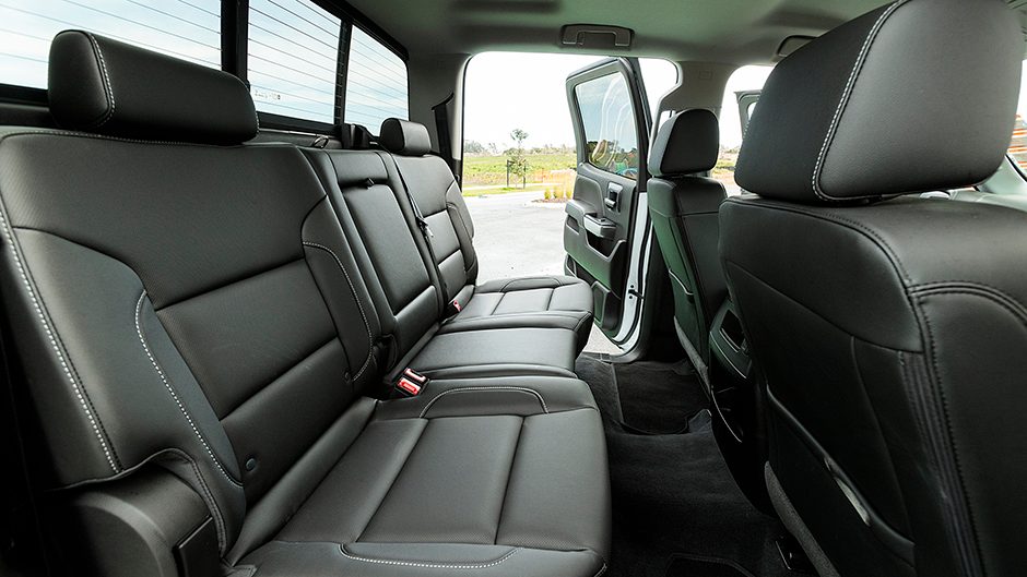 The Custom Sport gets the Z71 off-road option and is all white with a touch of chrome, including the 20-inch alloys in place of the 18s on the LTZ and Midnight Edition. It also gets the spray-on bedliner as standard. These things are the simply ginormous, the cabin space expansive. It’s the only vehicle where three full size car seats fit comfortably in the back. The Isofix latches have been rendered unusable by HSV, no doubt something to do with the Australian Design Rule legislation that the truck has to comply with, which also requires HSV to replace the factory seat belts. There are a few niceties on board like the heated wheel and seats, and the leather-clad chairs with ventilators. The infotainment system lacks in-built nav but it features GM’s Mylink for easy smartphone connection, and there’s a wireless charge pad too.