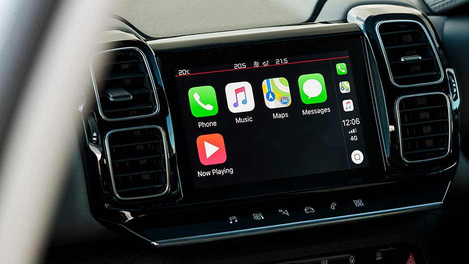 It also gets Grip Control, a TC-based system for off-roading that will likely see little use. Shine gains a parking aid, the Comfort seat design with the leather, 19-inch alloys, a charge pad, sat nav, powered tailgate and smart key. The cruise control uses the same column-mounted stalk Citroen has employed for decades. It’s been adapted to life in the active age, and while it functions fine, these controls are best placed on the steering wheel. Except here you’ll find buttons to change the view of the main dials, giving the cabin a filip in the tech stakes, while the infotainment system will interact with either phone system.