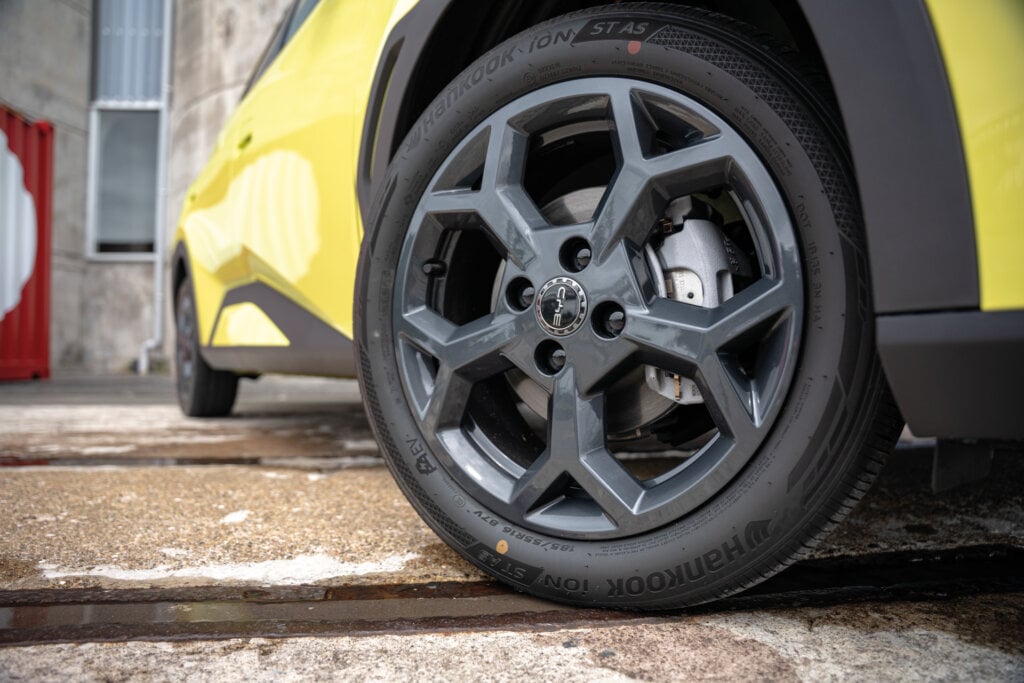 On 16-inch alloy wheels wrapped in Hankook rubber (steel wheels on the Essential), the Premium has a tidy stance. It is a bit slab sided, but rakish enough to be as sporty as a tiny hatch can really.