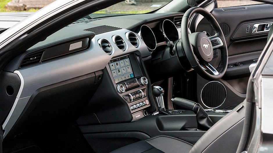 This Mustang sits a little lower than usual due to the fitment of Ford Performance Racing track lowering springs. These are $1600 fitted, and if you’ve tried the GT and thought it a little soft in the suspension these will sort that. They add a bit of vigor to the everyday ride quality, call it sporty rather than racey, but they help the GT get set for cornering action quicker by removing its tendency to roll slightly on entry. The steering of the stock GT is good, not overly sharp but it gets the front end tucking in nicely. With the sportier springs, this GT reacts more quickly to steering inputs, getting set earlier and so feels more composed heading into the bend. The springs may transfer more of the bumps but the general compliance remains; it’s not crashy and you’re not in danger of running out of clearance.