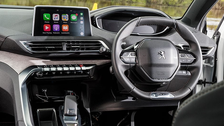 The GT is powered by a 2.0-litre diesel featuring 133kW and 400Nm. It’s a Euro6 compliant unit, rated at an optimistic 5.1L/100km but a figure in the mid eights, even the sevens, is achievable. It works via a six-speed auto, and is the lone model here to employ the front wheels solely for motivation, as no 3008 offers AWD. So it’s unlikely to find much favour outside main city centres this, but it’s more of an urbanite anyhow.