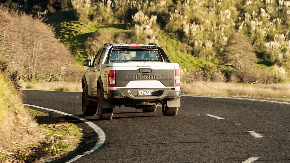 At an indicated 100km/h, the GPS logger was showing 104km/h. Careful around speed cameras then. The added clearance makes entry that much more of a climb, but side steps are standard. Utes don’t have best turning circles but this one’s bigger still, one which I misunderestimated, as George W would say. I thought I had plenty of room to turn around in but somehow managed to clip the kerb, gashing what have to be the most ungarkable wheels on the market given the sizeable sidewalls. And those turning dimensions, (13.4m vs 12.7m for the Z71) make carpark manoeuvring trickier than usual.